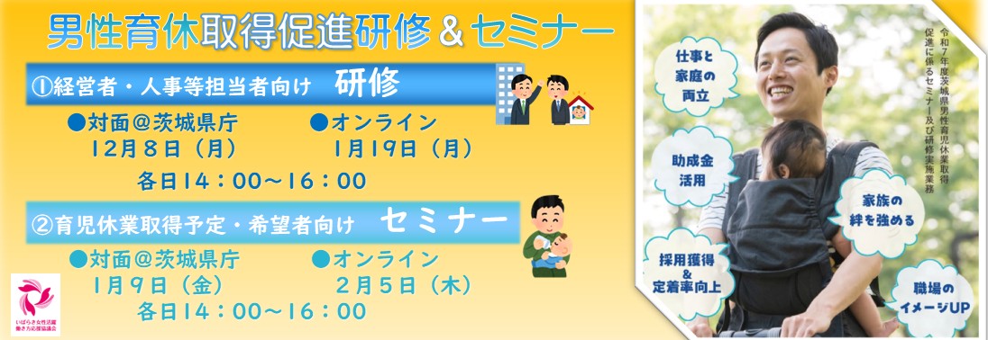 育児・介護休業法により、「産後パパ育休」の創設や育児休業の分割取得が可能となったほか、企業における対象労働者への個別意向確認や育児休業を取得しやすい環境整備が義務化されています。茨城県も加盟している「日本創生のための将来世代応援知事同盟」では、経営者・管理職(イクボス)および育休取得者本人それぞれの視点における男性の育児休業取得のポイントを紹介する動画を作成しましたので、ご紹介します。
